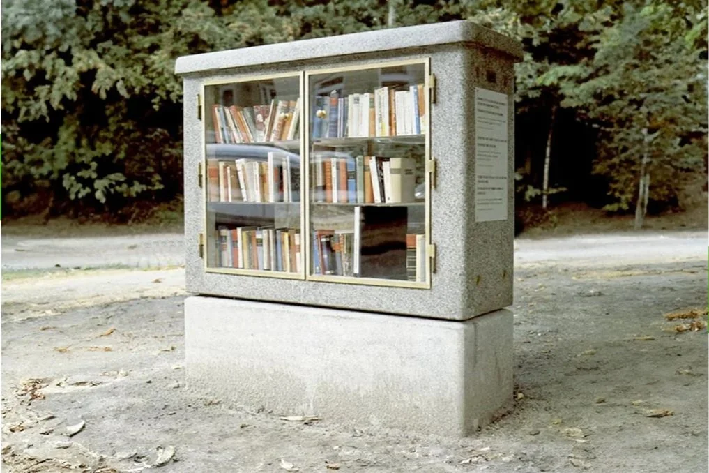 Zukünftig werde ich im Kunstflâneur auch Werke im öffentlichen Raum empfehlen, die abgebaut wurden und die ich vermisse. Den Anfang macht das Projekt „Die offene Bibliothek“ von Clegg & Guttmann, für das ich 1993 als Studentin der Angewandten Kulturwissenschaften mitgearbeitet habe. Als Teil der Gruppenausstellung „Backstage“ des Kunstvereins in Hamburg, wurde damit der neue Standort am Klosterwall eröffnet.