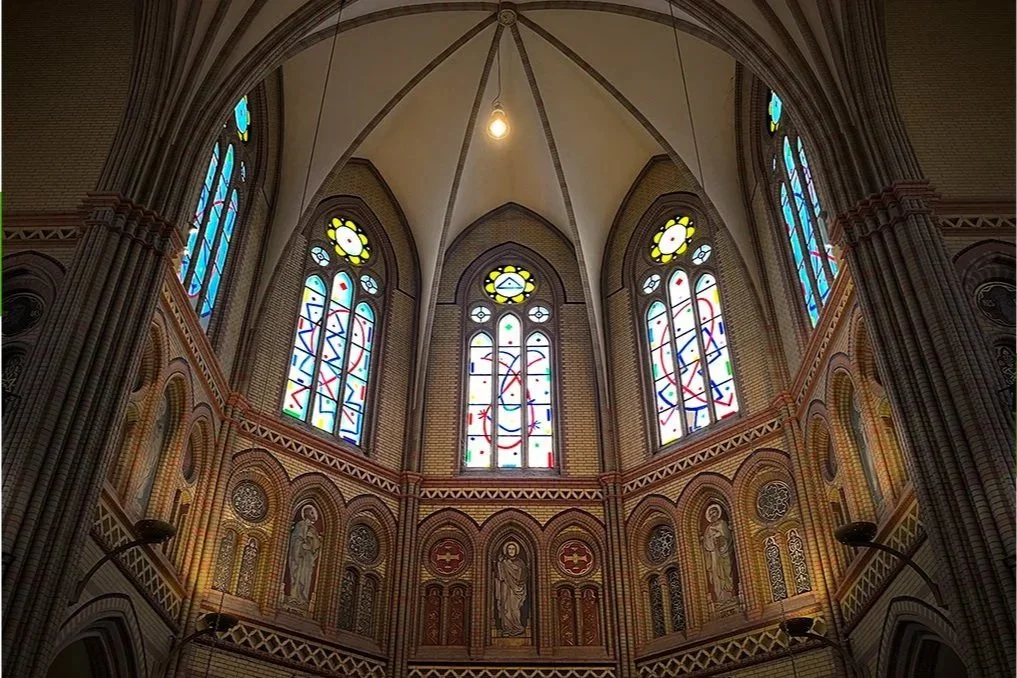 Die Kirche St. Johannis wurde 1868-73 unter der Leitung des damals erst 28-jährigen Berliner Kirchenbaumeister Johannes Otzen (1839-1911) als neugotische Backsteinbasilika erbaut. Während des Zweiten Weltkrieges wurden die Fenster zerstört, und seit 1997 kontrastieren die lebensfrohen, im modernen Stil gehaltenen Fenster der Künstlerin und Professorin die historische Architektur.